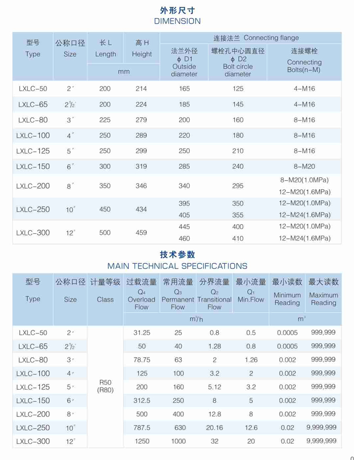大口徑磁傳可拆水表(光電直讀/方堵塞)LXLC/L
