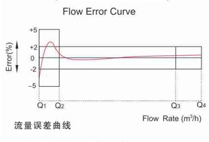 a、從包括最小流量(Q1)在內(nèi)到不包括分界流量(Q2)的低區(qū)中的最大允許誤差是±5%