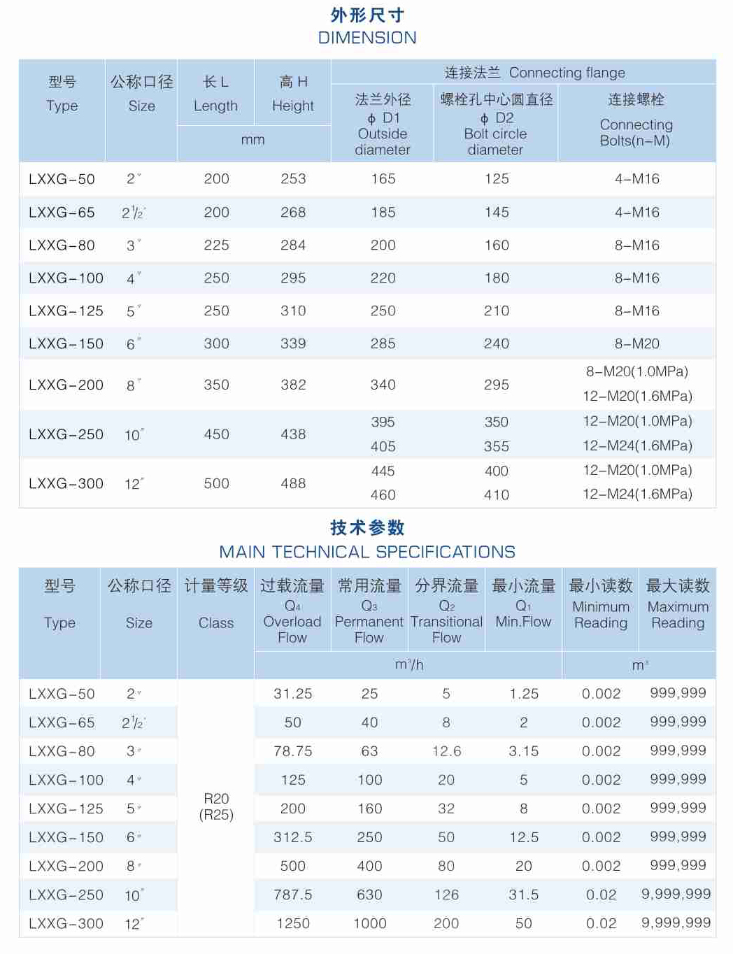 水平旋翼干式水表WIR/LXXG DN40-300mm 可拆卸