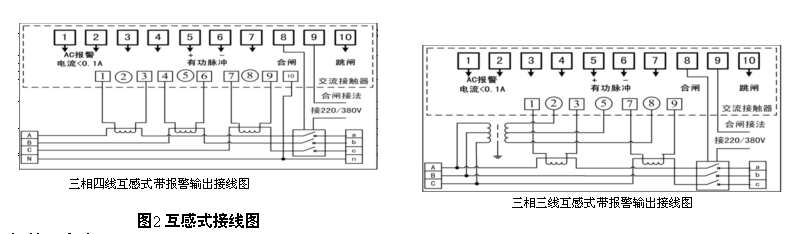 ◆負(fù)荷開(kāi)關(guān)采用表外安裝,表內(nèi)采用繼電器控制(觸點(diǎn)容量為250VAC/5A),或內(nèi)置繼電器斷電控制;